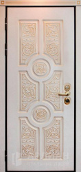 Белая дверь из толстого металла с декоративной вставкой №4