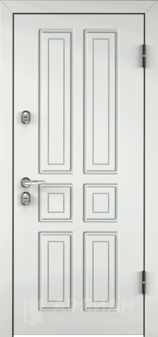 Входная железная дверь с белым цветом внешней панели и глубокой фрезеровкой на панели №13