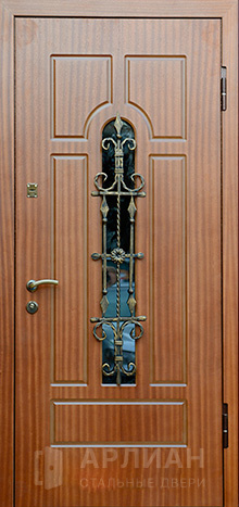 Фото №2 «Металлическая дверь МДФ шпон со стеклом и ковкой №19»