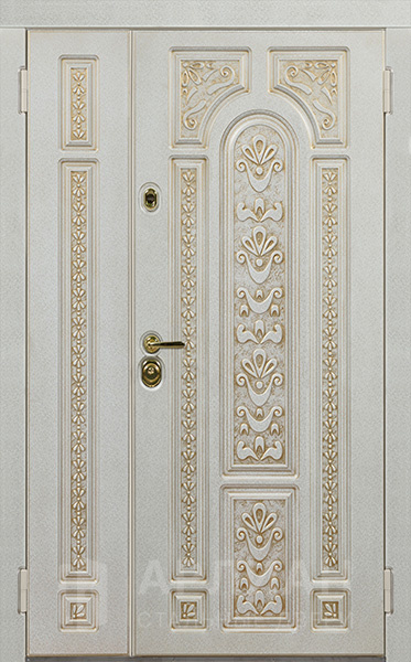 Фото «Входная стальная дверь с отделкой белого цвета с патиной №28»